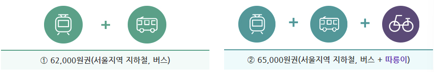 카드 가격은 따릉이를 포함한 65,000원 짜리와 따릉이를 포함하지 않은 62,000원짜리 두 종류가 있으니 본인의 사용 환경에 따라 구매하시면 됩니다.