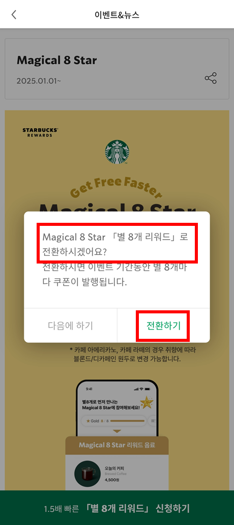 3. 스타벅스 Magical 8 Star 등록, 해제하기 (12Star로 돌아가기)