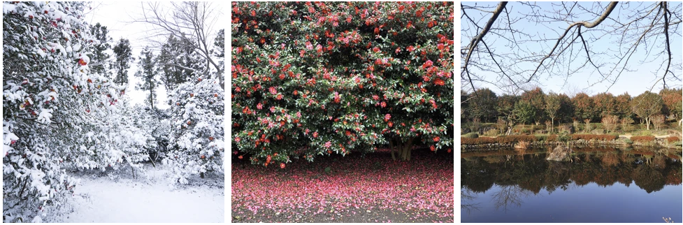 6만여 평의 부지에서 가을부터 봄까지, 시기를 달리하며 피는 80개국의 500여 품종의 동백나무.